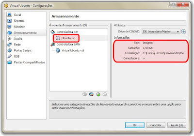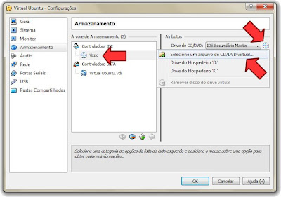 Lembro que o procedimento é quase o mesmo se você quiser instalar um S.O. guest de uma mídia comum de CD ou DVD. Só que no lugar de selecionar uma imagem ISO você seleciona um "Drive do hospedeiro".